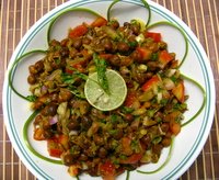 Kala chana chaat or black chickpeas salad is a very healthy snack food. It can be eaten as a kala chana subzi as well. The beauty of this recipe is that it is 'completely oil free'.